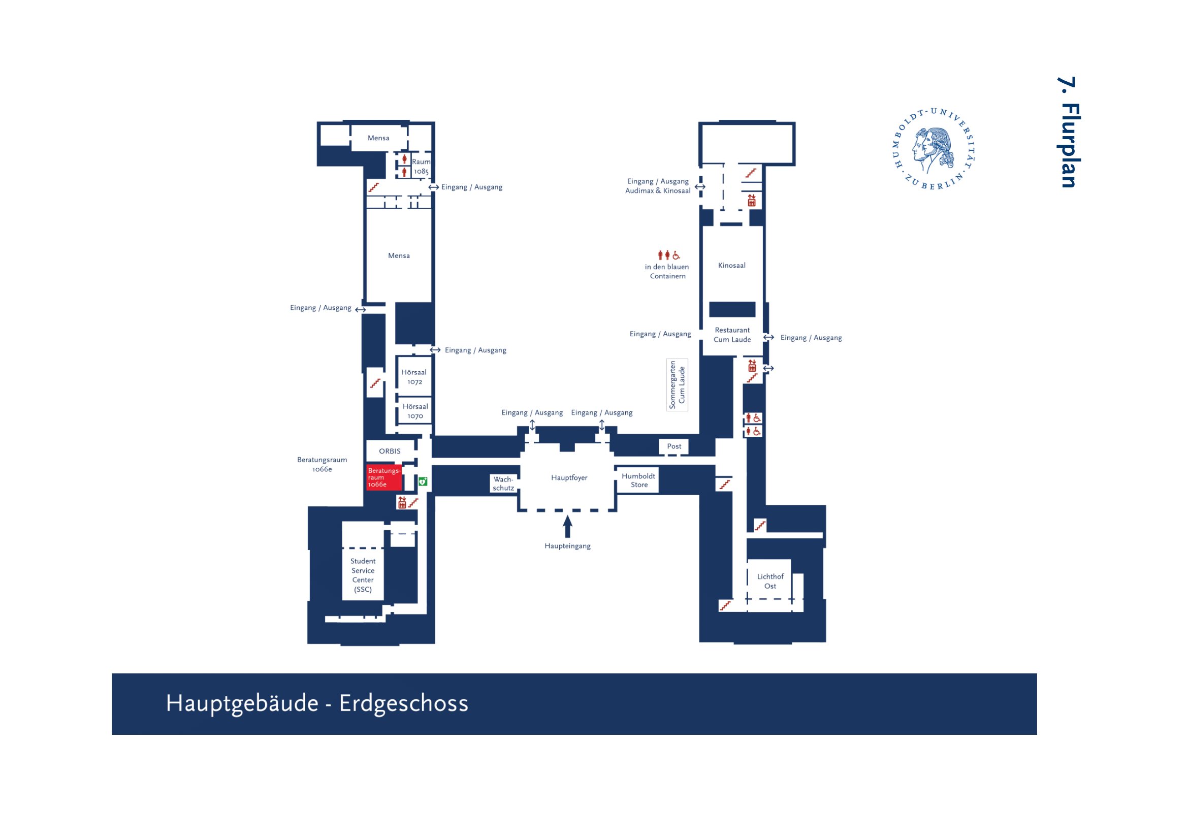 - S3, S5, S7, S75, S9 bis Friedrichstraße, von dort 600 m Fußweg